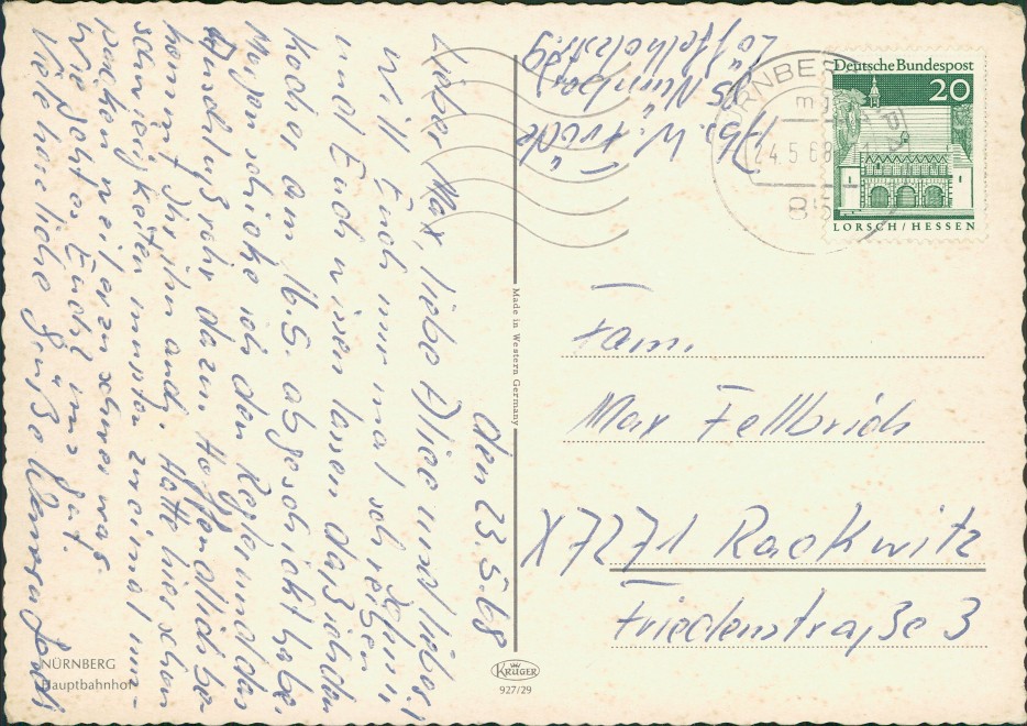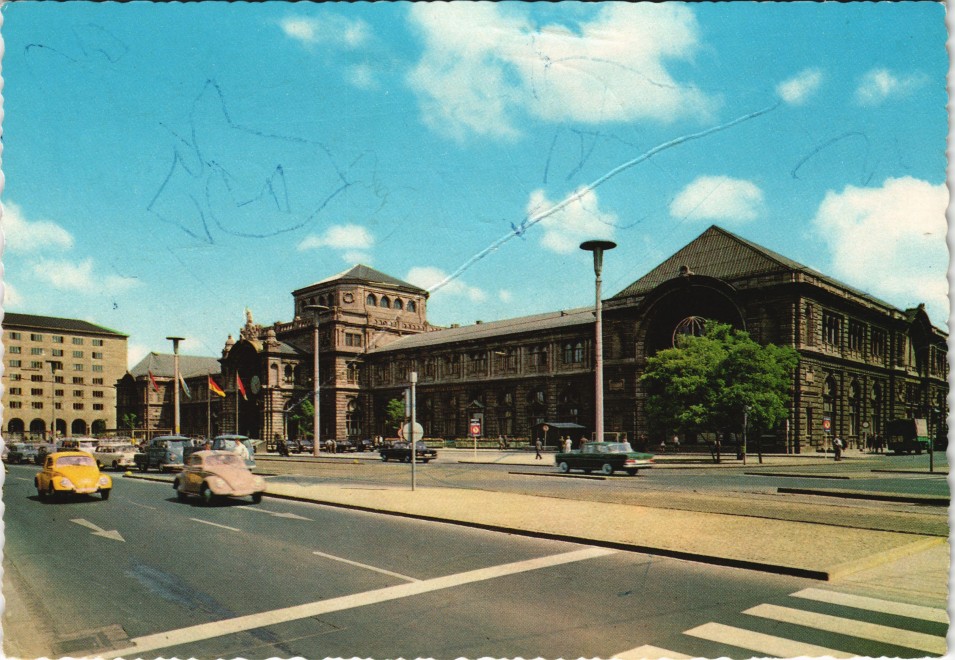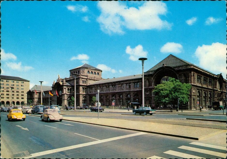Foto Karte: Hauptbahnhof Strassen Verkehr Autos VW Käfer