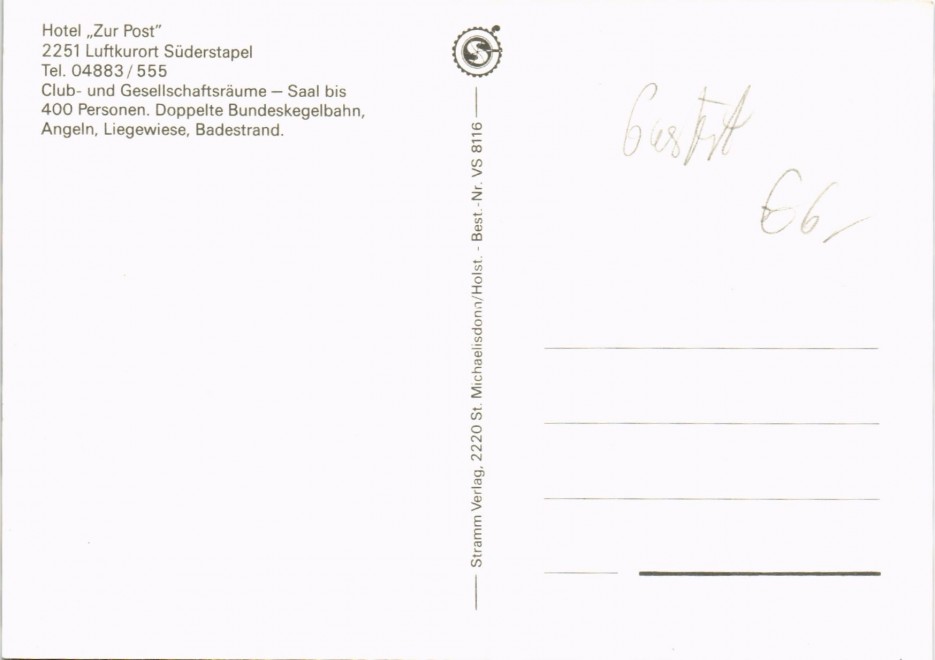 Ansichtskarte: Gasthof zur Post - Stube, Saal - Süderstapel