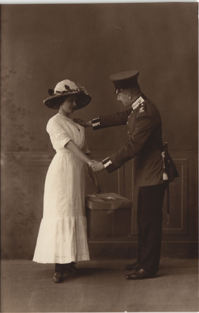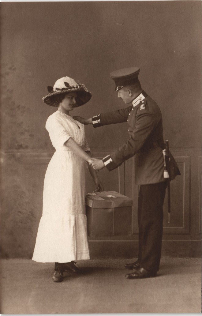 - Soldat begrüßt feine Dame, Atelierfoto Militaria