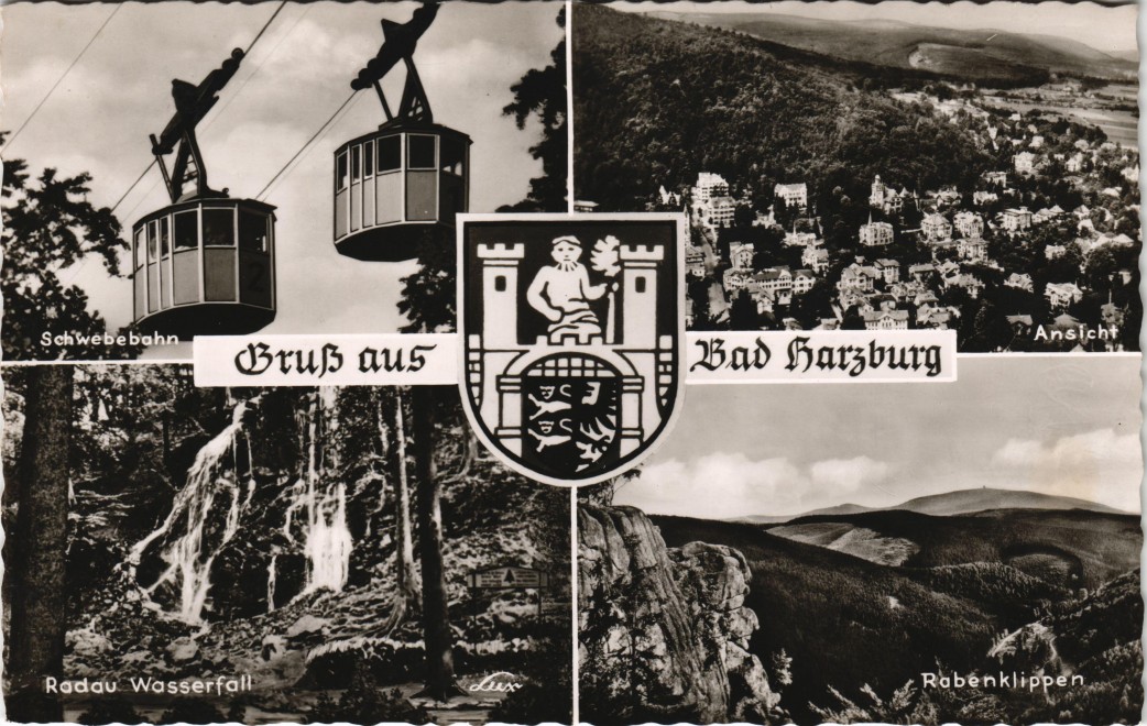 Foto Karte: Mehrbild-AK mit Schwebebahn, Panorama, Radau Wasserfall - Bad Harzburg