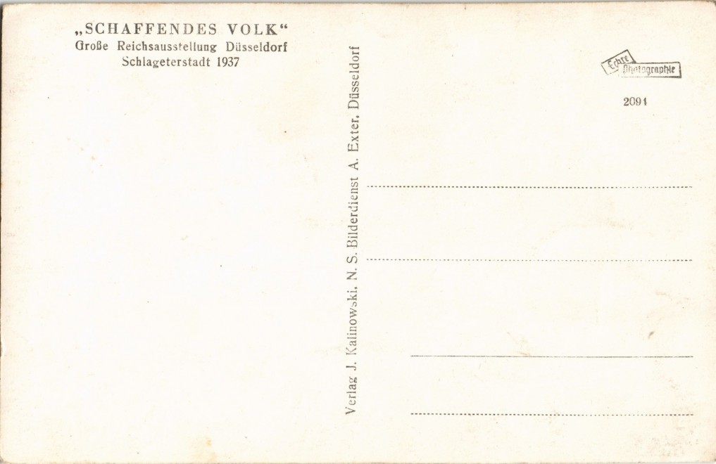 Ansichtskarte: ,,SCHAFFENDES VOLK“ Große Reichsausstellung - Düsseldorf