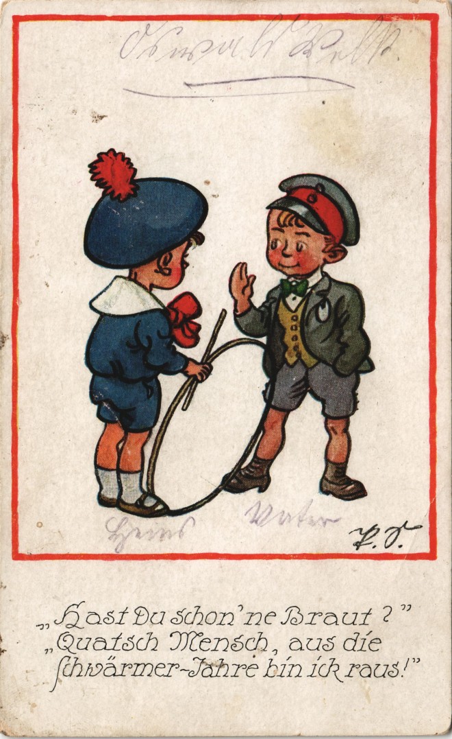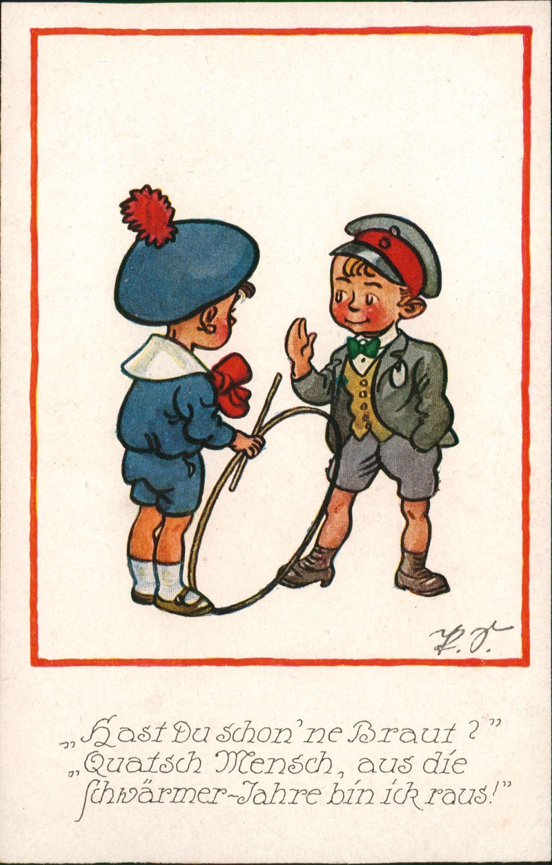 Ansichtskarte: Kind als Soldat - Hast du schon ne Braut
