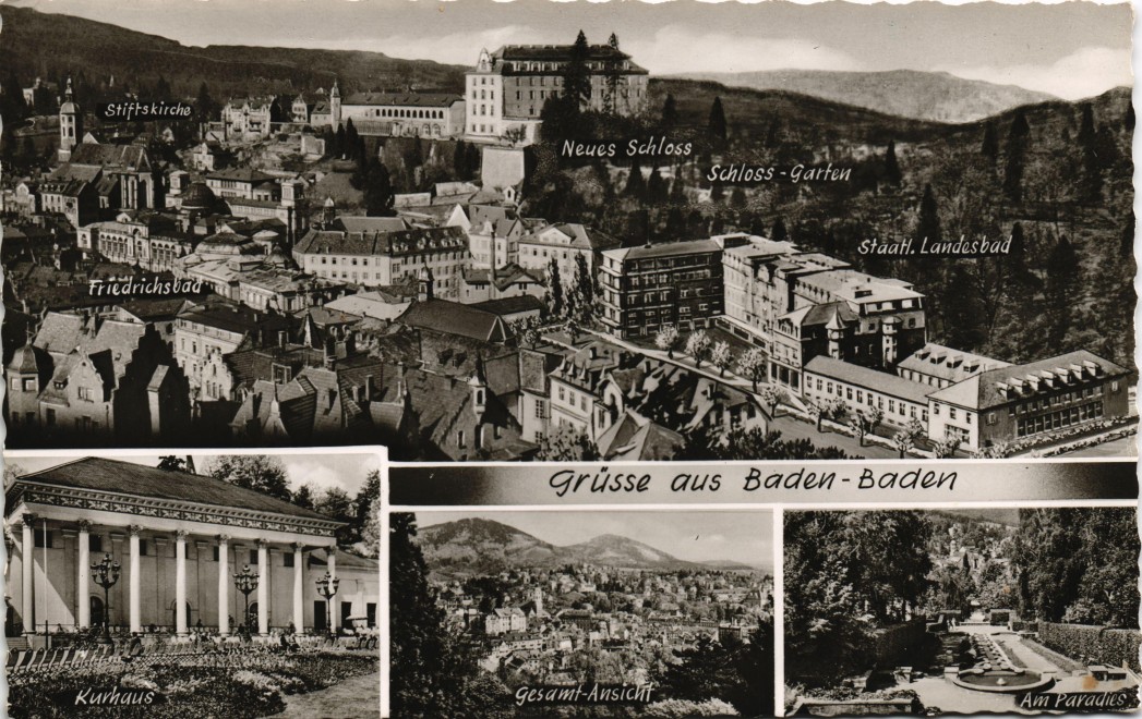 Foto Karte: Gruss-Aus-Mehrbild-AK mit 4 Foto-Ansichten - Baden-Baden