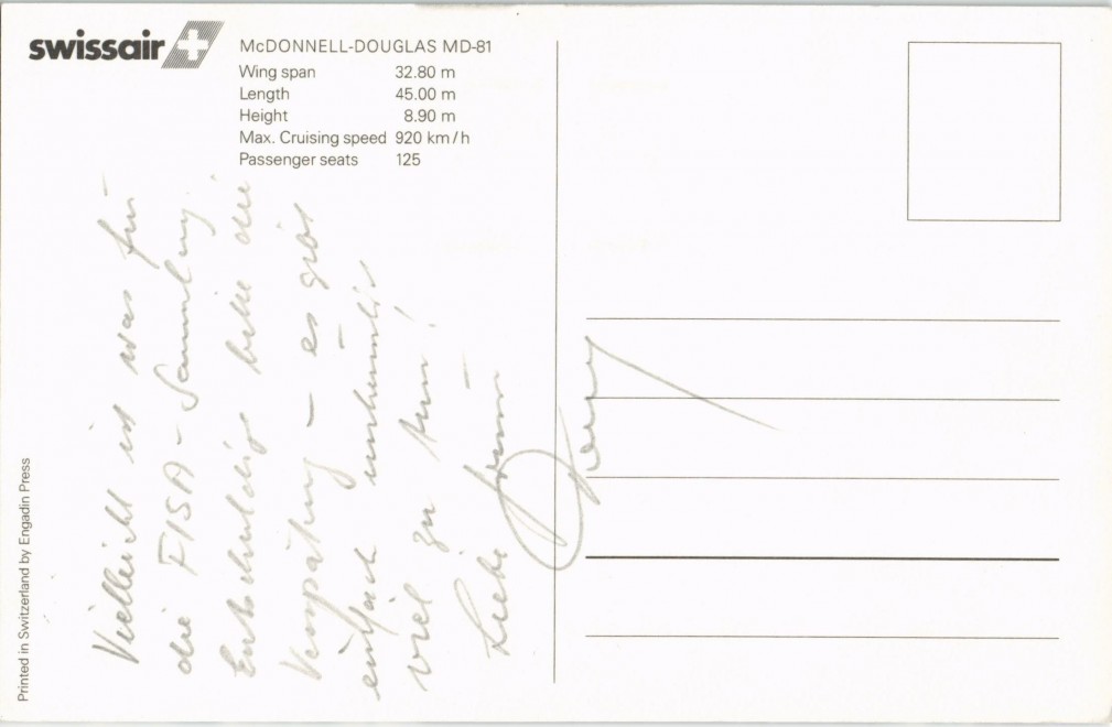 Foto Karte: Swissair MCDONNELL-DOUGLAS MD-81 Flugzeug Airplane Flugwesen