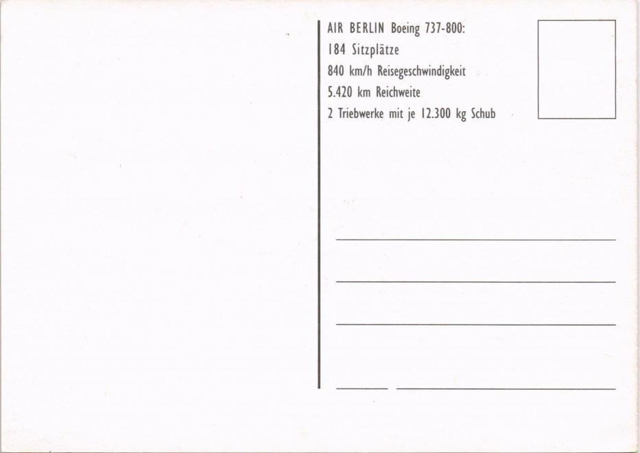 Foto Karte: Flugwesen Airplane Flugzeug AIR BERLIN Boeing 737-800: