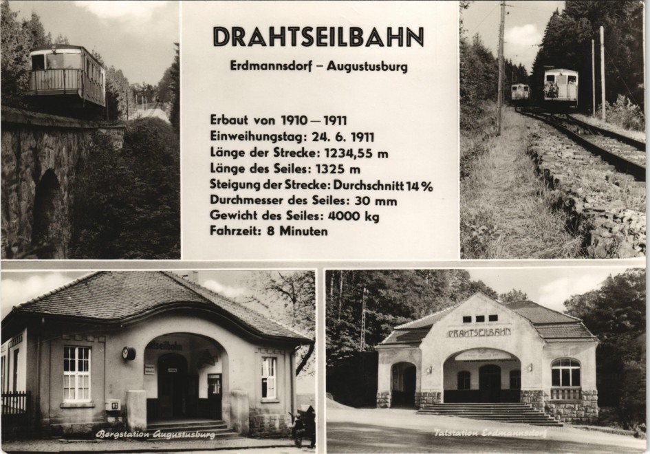 - DRAHTSEILBAHN Erdmannsdorf Augustusburg mit Technik-Daten DDR Mehrbild-AK