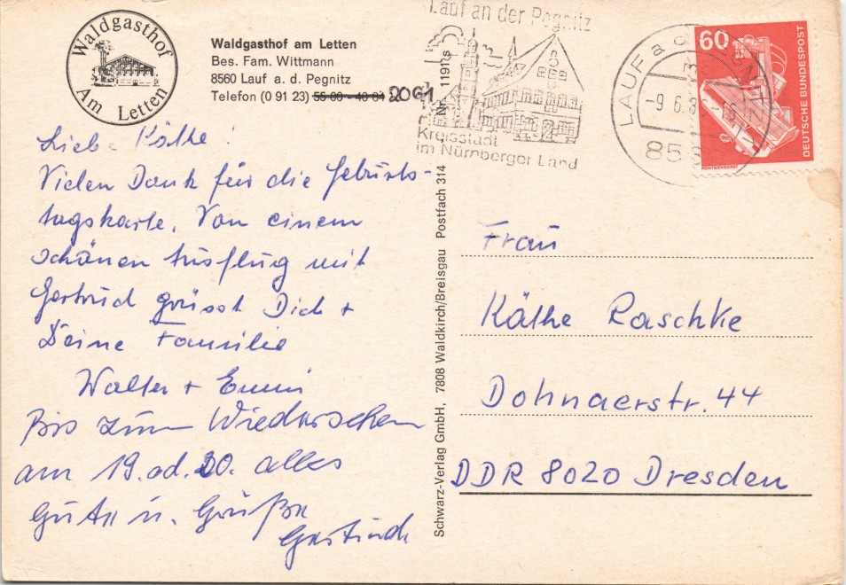 Foto Karte: Waldgasthof am Letten Bes. Fam. Wittmann - Lauf a.d.Pegnitz