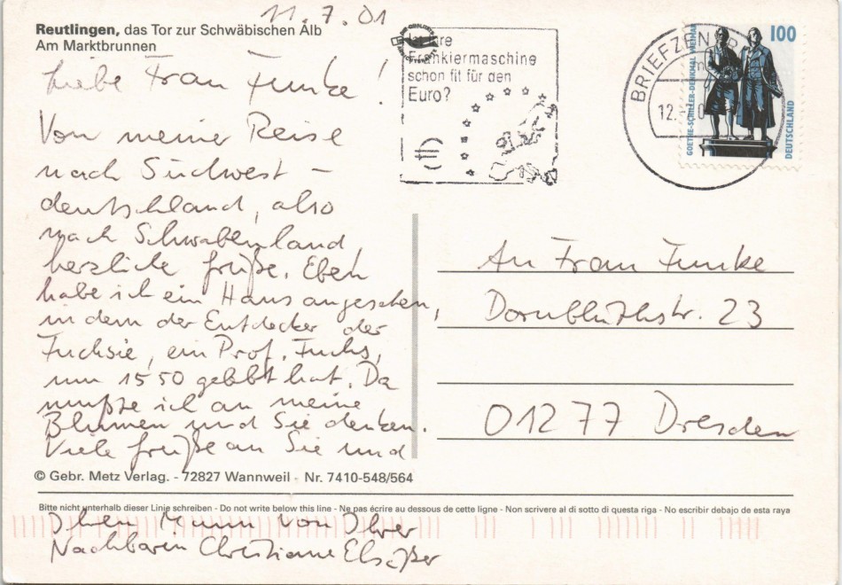 Foto Karte: Marktplatz Marktbrunnen - Reutlingen