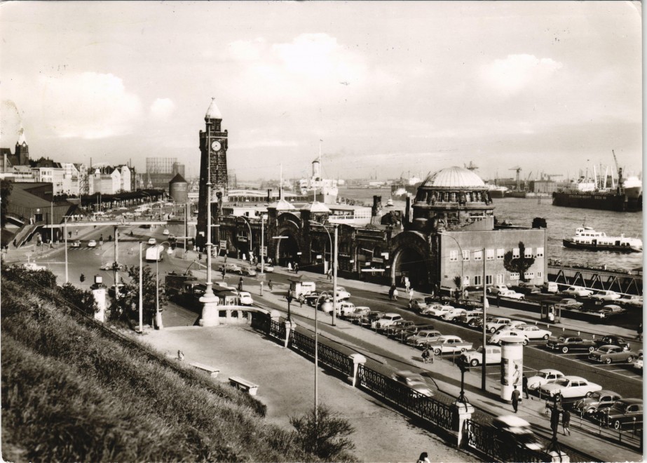 Foto Karte: Landungsbrücken und Hafen Panorama - St. Pauli-Hamburg