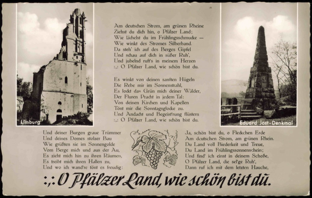 Foto Karte: Deutschland Rheinland-Pfalz Liedtext O Pfälzer Land wie schön bist du - .Rheinland-Pfalz
