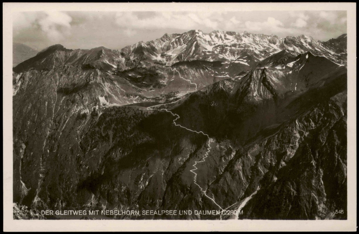 Foto Karte: GLEITWEG MIT NEBELHORN SEEALPSEE UND DAUMEN - Oberstdorf (Allgäu)