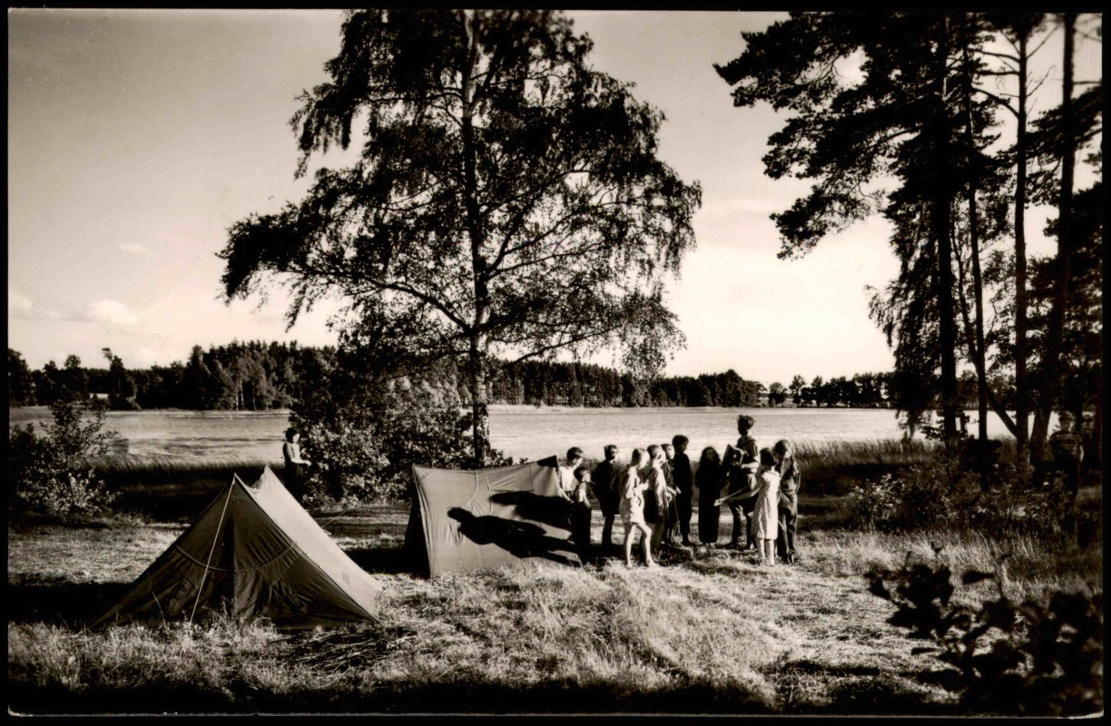 Ansichtskarte: Lagerfreuden am Großen Hausteich, Zeltplatz Kinder - Plothen