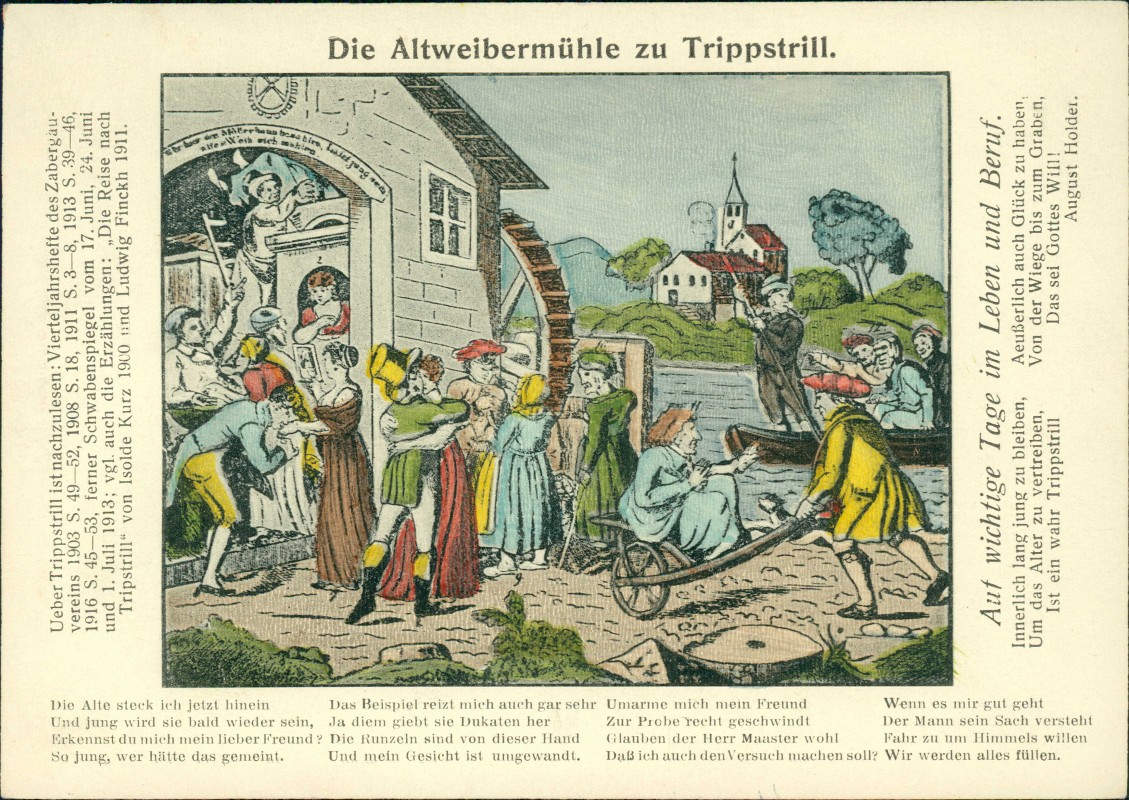 Ansichtskarte: Künstlerkarte: Die Altweibermühle zu Trippstrill