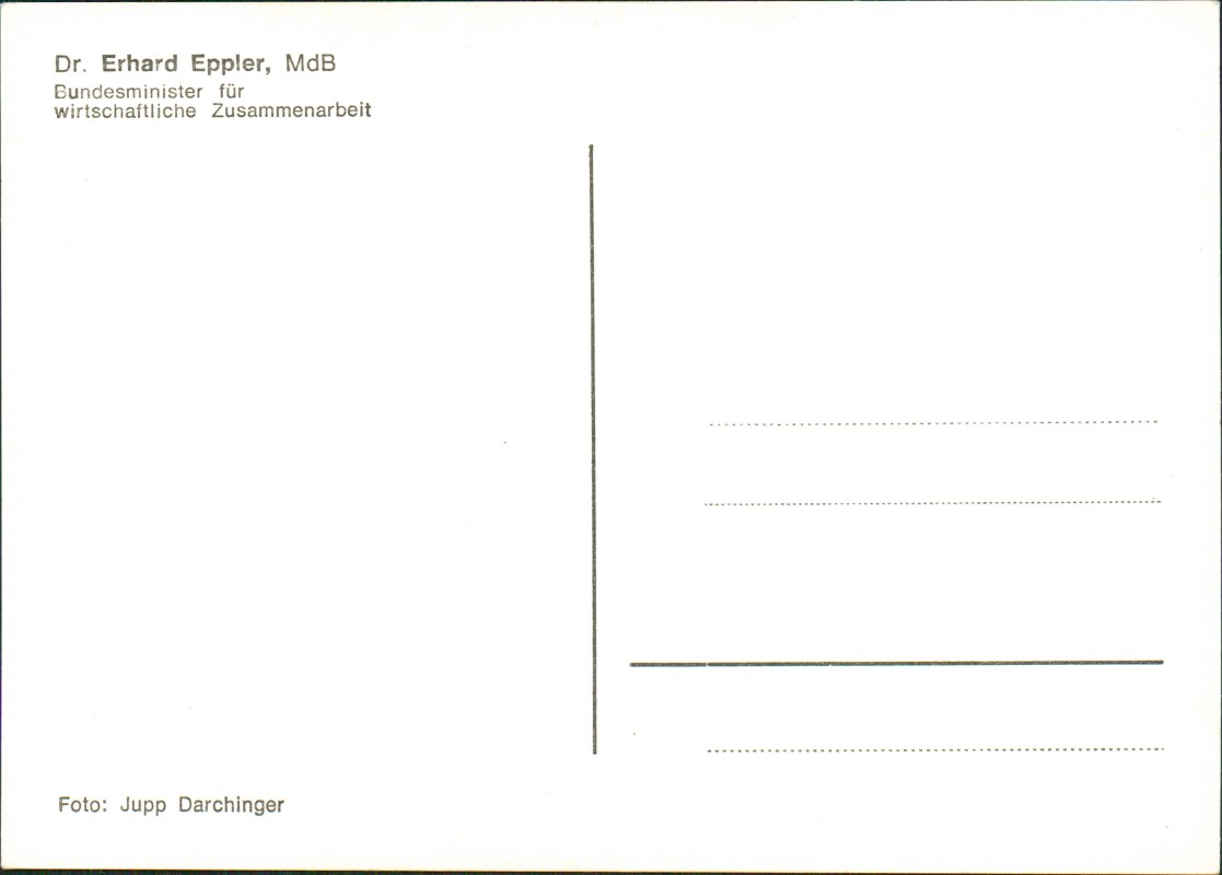 - Autogrammkarte Politik Dr. Erhard Eppler MdB Bundesminister für wirtschaftliche Zusammenarbeit