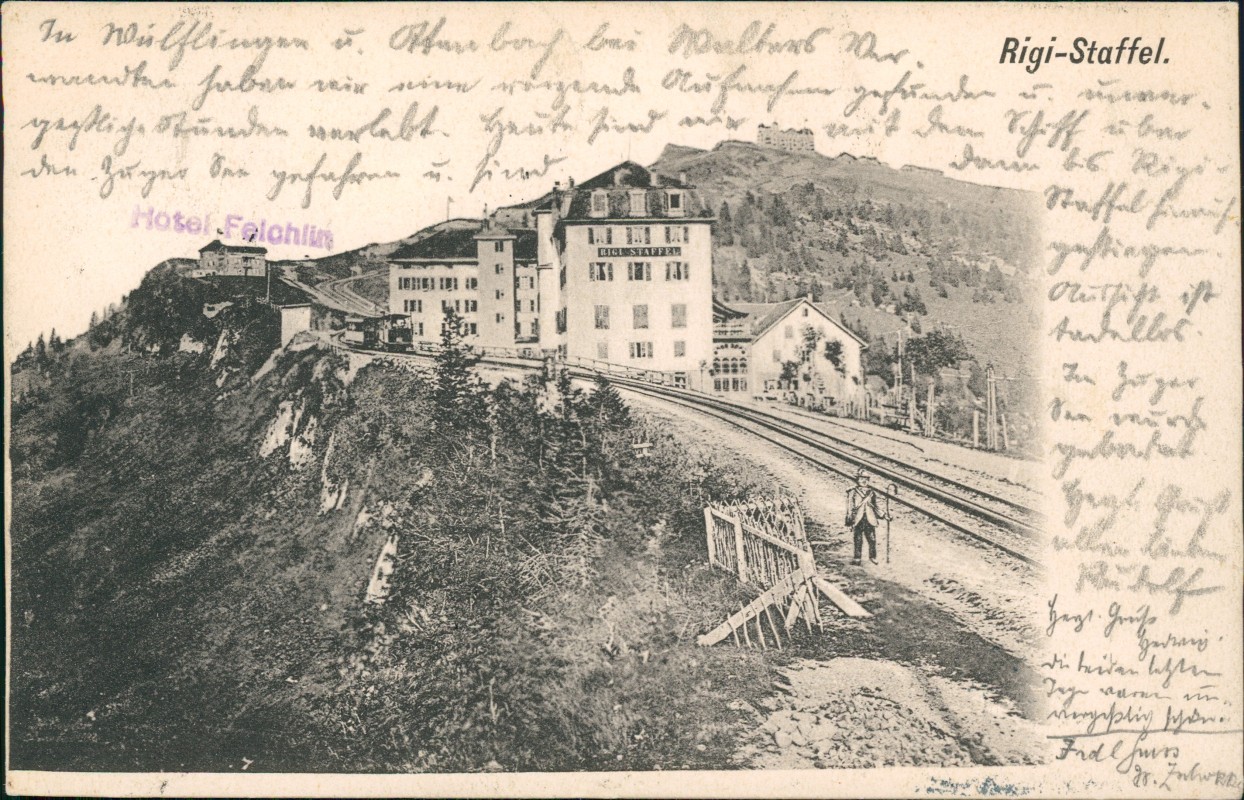 Ansichtskarte: Rigi Staffel, Hotel, Bahnstrecke - Küssnacht am Rigi