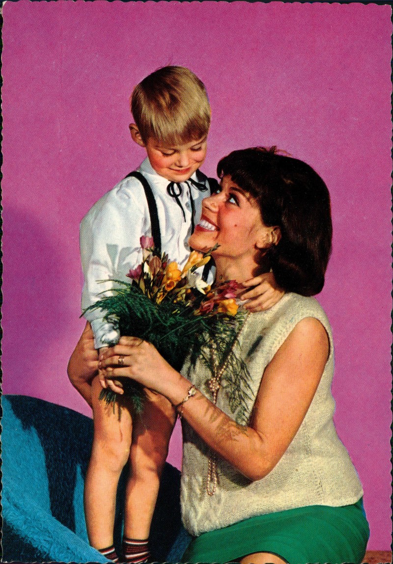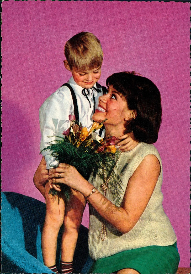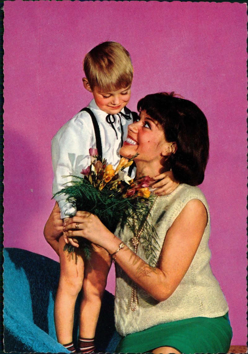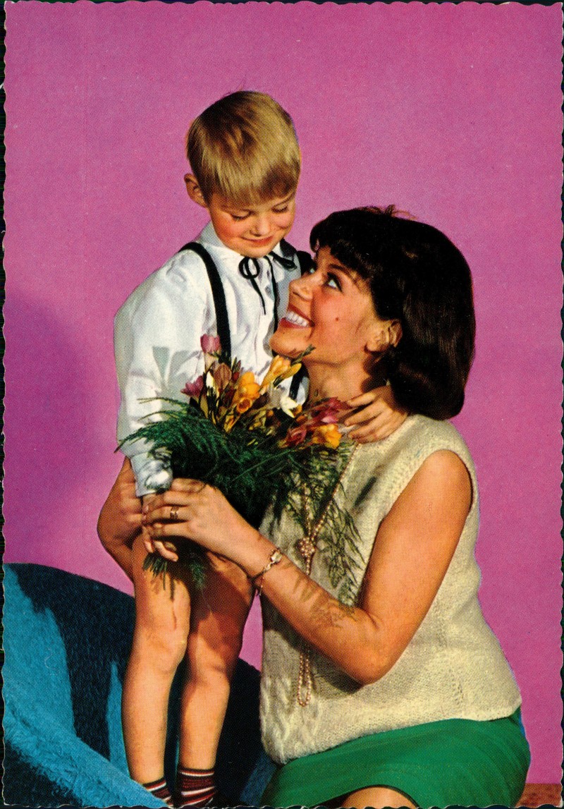 Foto Karte: Menschen Soziales Leben Familienfotos: Mutter mit Kind, Sohn, Blumen