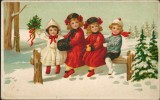 Ansichtskarte: Kinder Künstlerkarte Bin ein fahrender Gesell Junge und Mädchen wandern durch den Wald