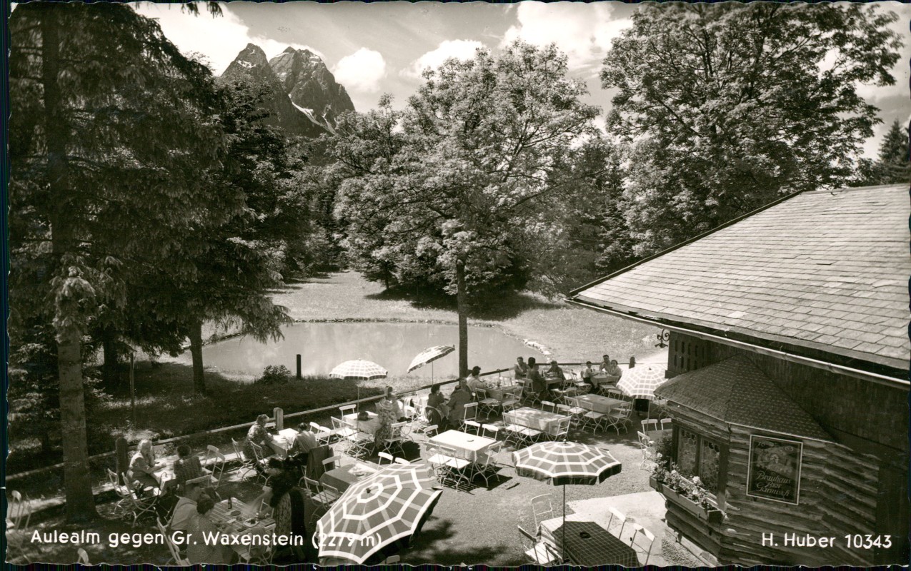 Ansichtskarte: Aulealm gegen Gr. Waxenstein (2279 m) - Grainau