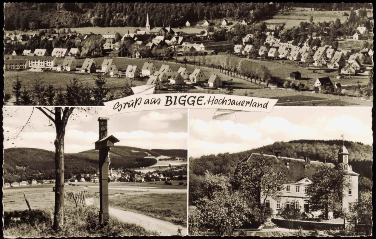 Ansichtskarte: 3 Bild: Straßen, Schloß, Kreuz - Bigge (Sauerland)-Olsberg