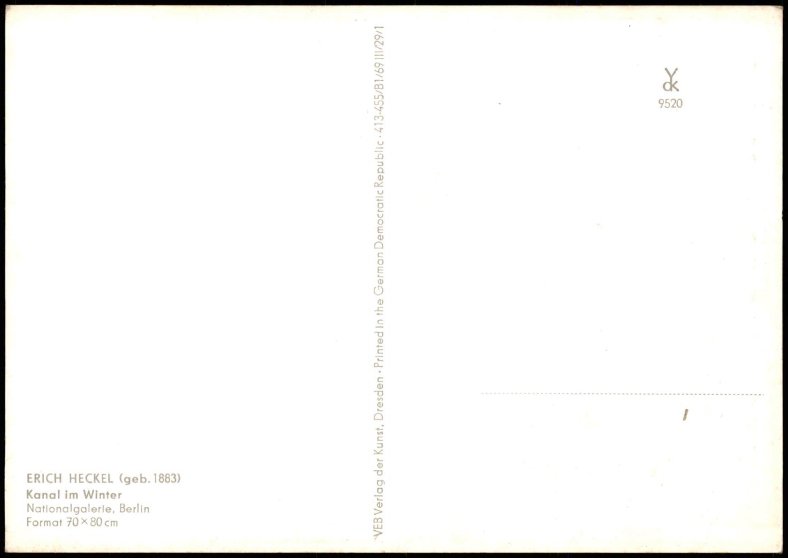 - Künstlerkarte Kunst ERICH HECKEL (geb. 1883) Kanal im Winter