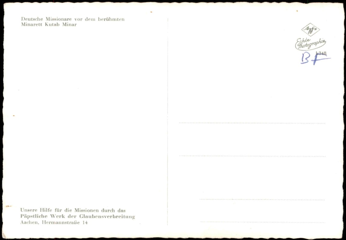 Foto Karte: Deutsche Missionare vor dem berühmten Minarett Kutab Minar