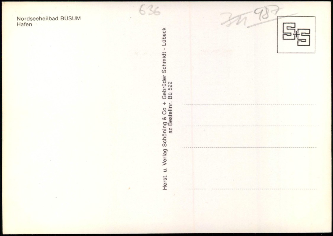 - Ansichtskarte Büsum Hafen, Motorboot Segelschiff 1985