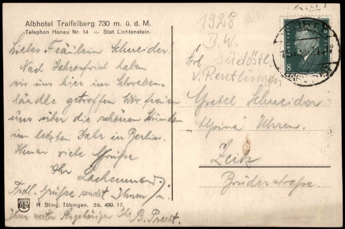 Ansichtskarte: Albhotel Traifelberg Station Lichtenstein. - Honau