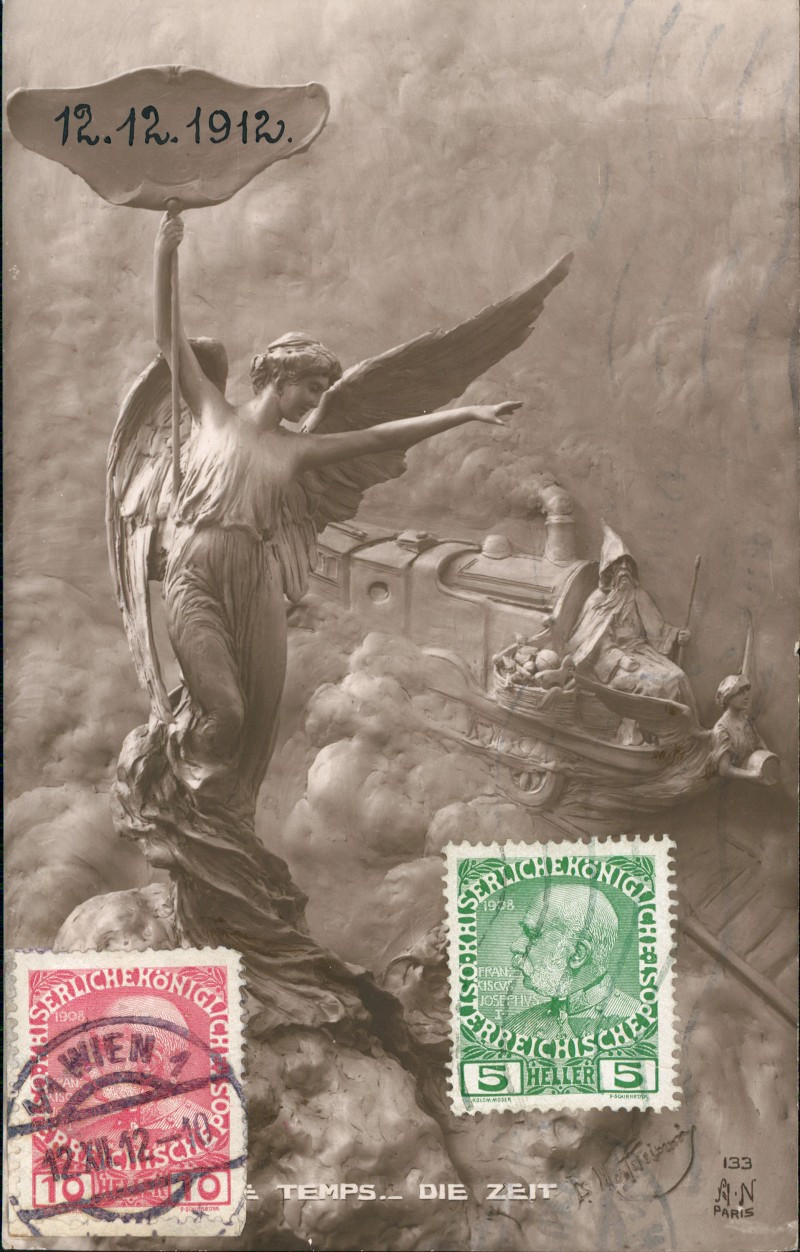 Ansichtskarte: Künstlerkarte Fotokunst Engel Zug Temps Die Zeit