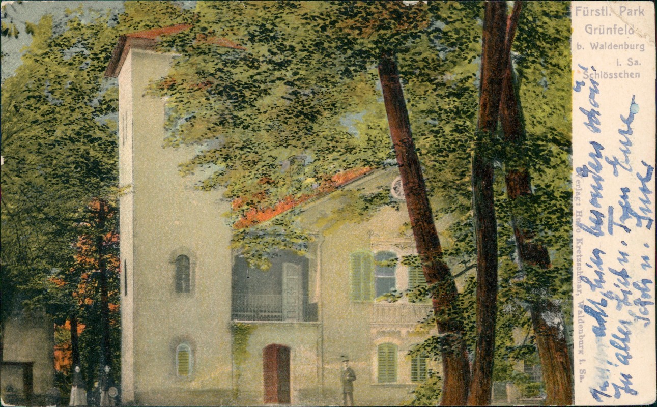 Ansichtskarte: Fürstlicher Park Grünfeld Schlößchen - Waldenburg (Sachsen)
