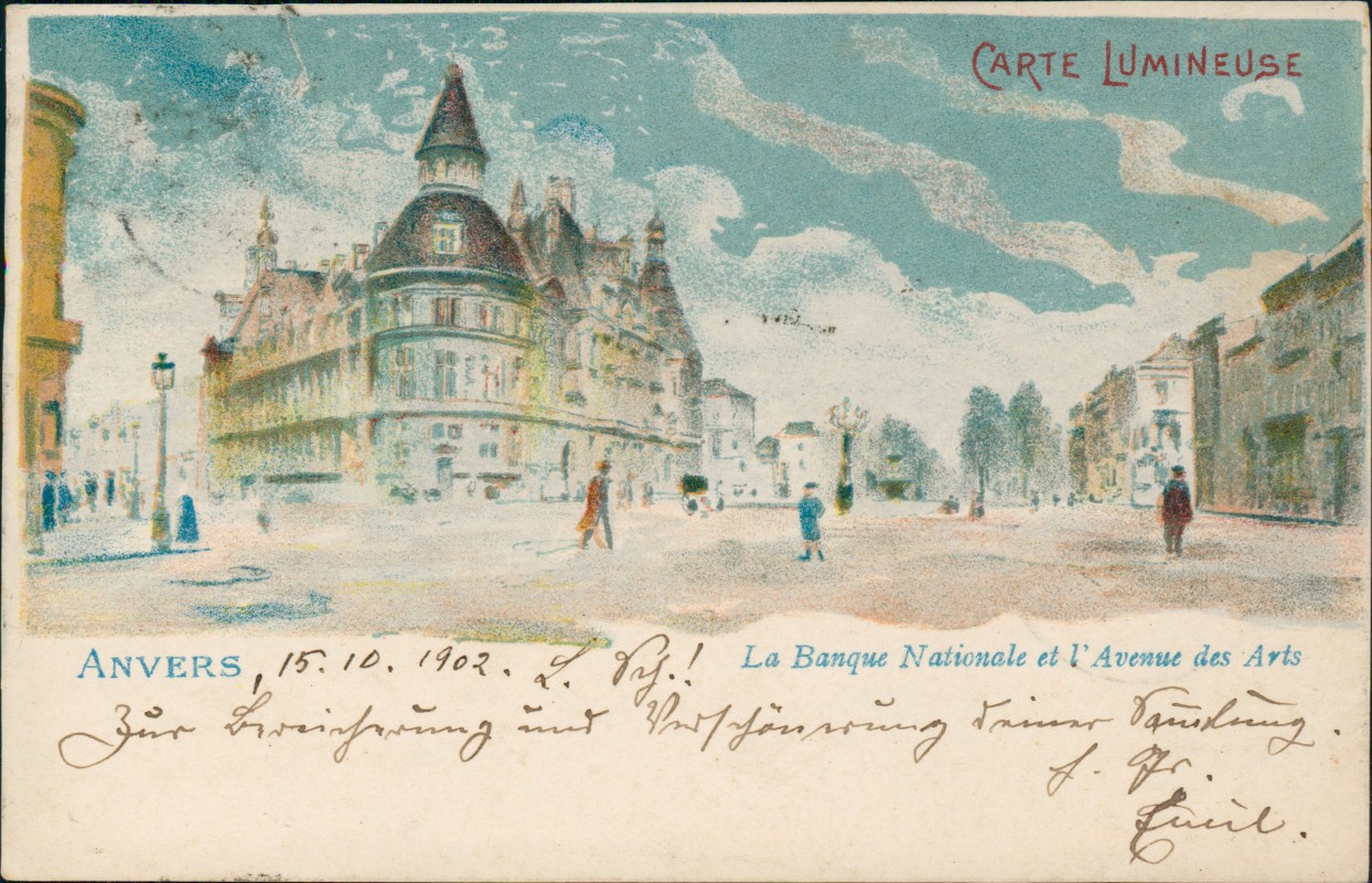 Ansichtskarte: La Banque Nationale et l'Avenue des Arts CARTE LUMINEUSE - Antwerpen