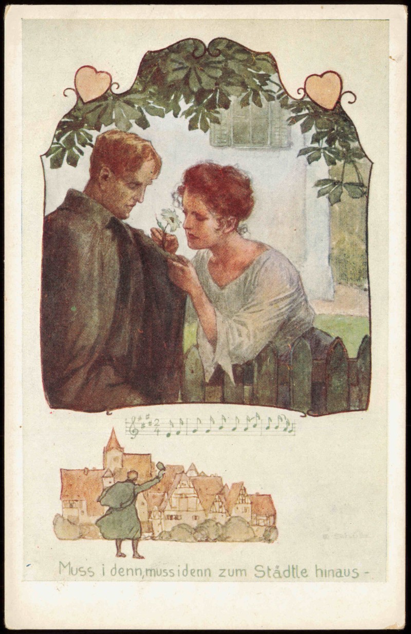 Ansichtskarte: Liebe Liebespaare - Love Frau steckt Mann Blume an