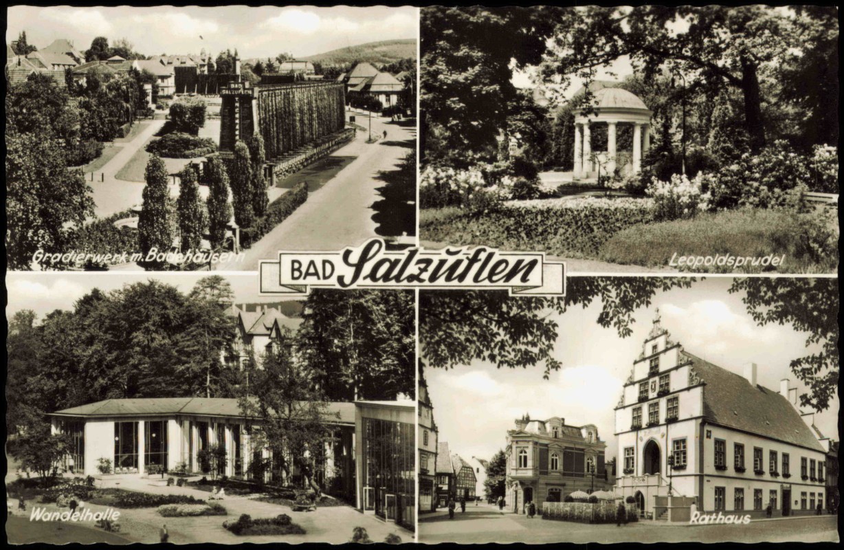 Ansichtskarte: 4 Bild Gradierwerk Leopoldsprudel Wandelhalle - Bad Salzuflen