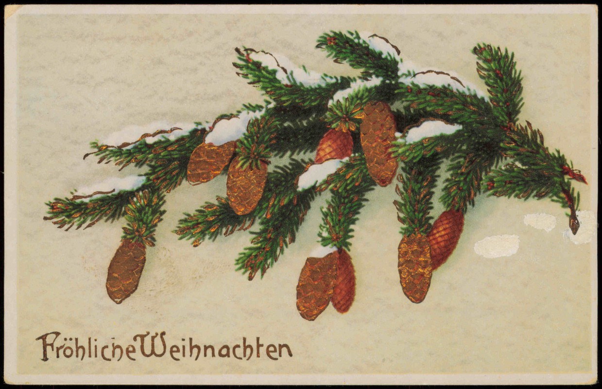 Ansichtskarte: Weihnachten - Christmas Tannenzweig Gold Tannzapfen