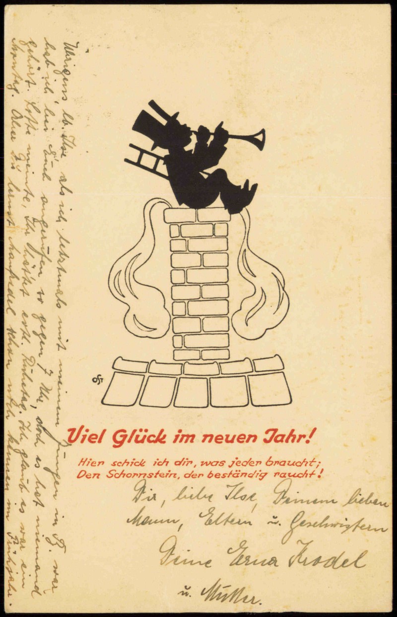 - Neujahr Sylvester New Year Schattenschnitt Schornsteinfeger