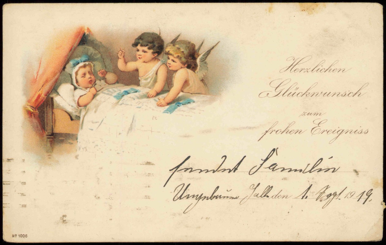 - Engel Angel stehen am Bett krankes Kind Künstlerkarte