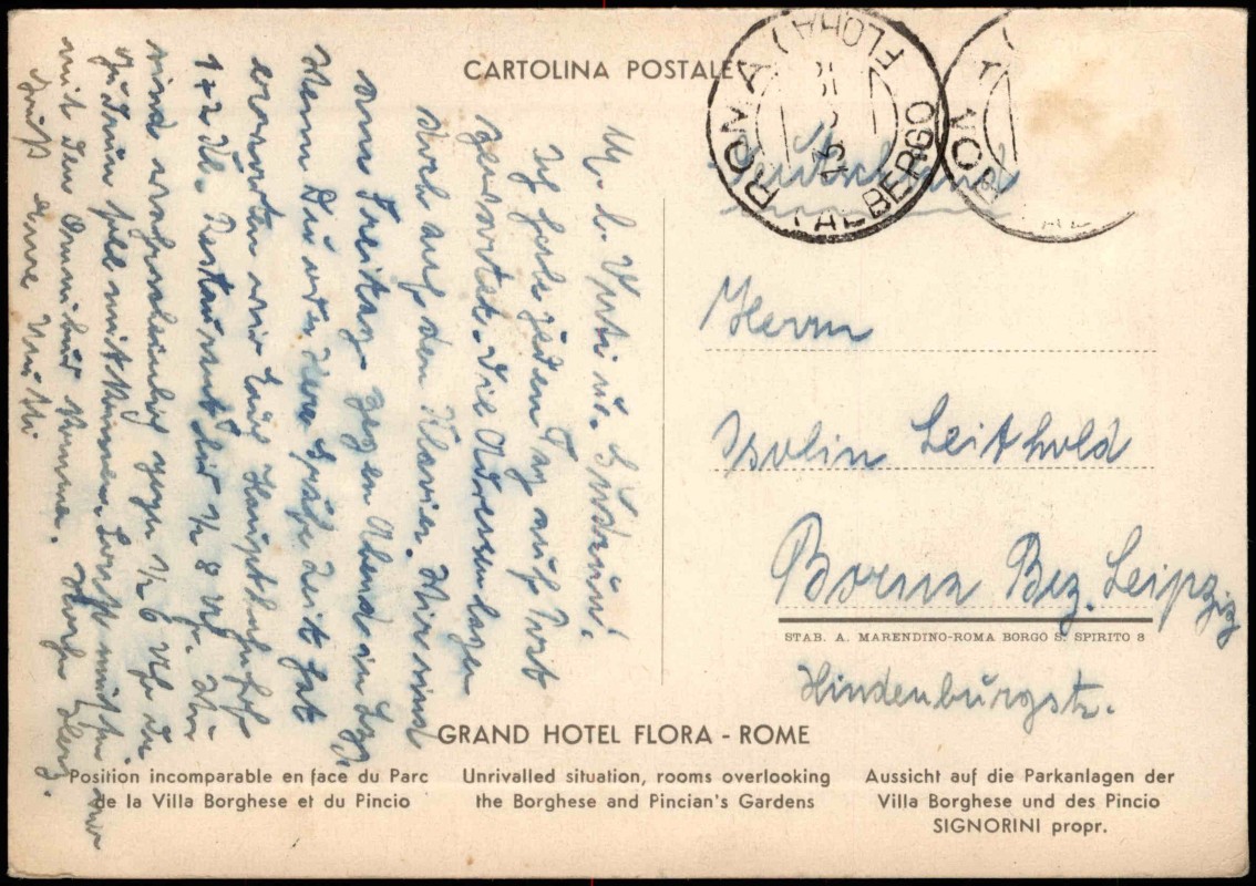 Ansichtskarte: Grand Hotel Flora Villa Borghese - Künstlerkarte - Rom