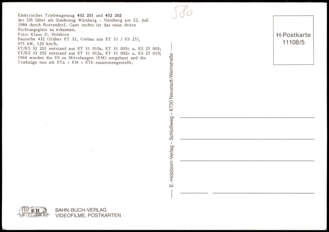Foto Karte: Eisenbahn (Railroad) Elektrischer Triebwagenzug bei Rottendorf