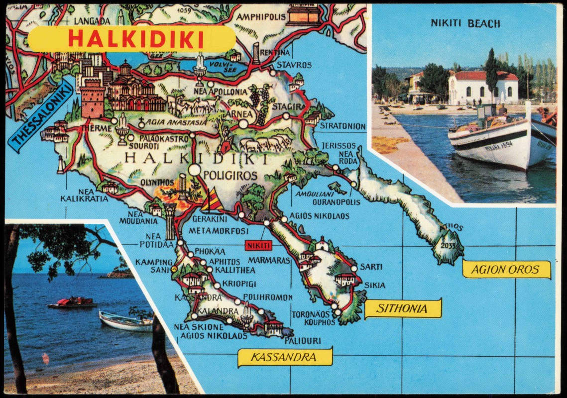Ansichtskarte: HALKIDIKI Griechenland Greece Landkarte Übersichtskarte (Map) - .Griechenland
