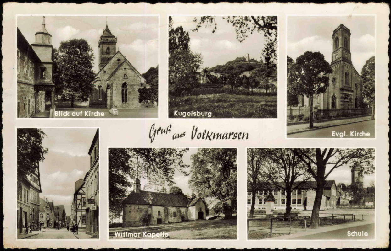 Foto Karte: Mehrbildkarte u.a. mit Kugelsburg Evgl. Kirche Wittmar-Kapelle - Volkmarsen