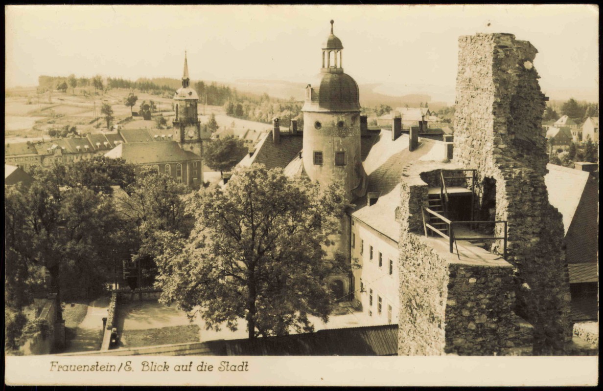 Ansichtskarte: Blick auf die Stadt - Ruine - Frauenstein (Erzgebirge)