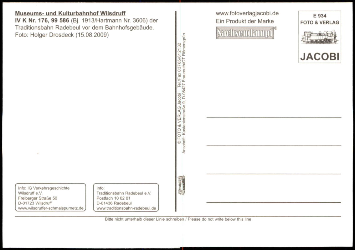 - Museums- und Kulturbahnhof Wilsdruff IV K Nr. 176, 99 586 (Bj. 1913/Hartmann Nr. 3606) der Traditionsbahn Radebeul vor dem Bahnhofsgebäude. Foto: Holger Drosdeck (15.08.2009)