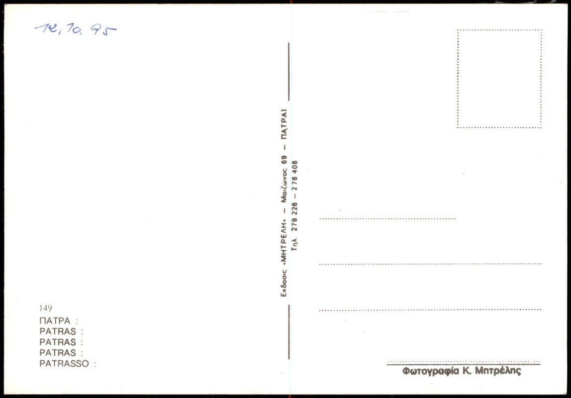 Ansichtskarte: 3 Bild Stadt Platz Denkmal - Patras