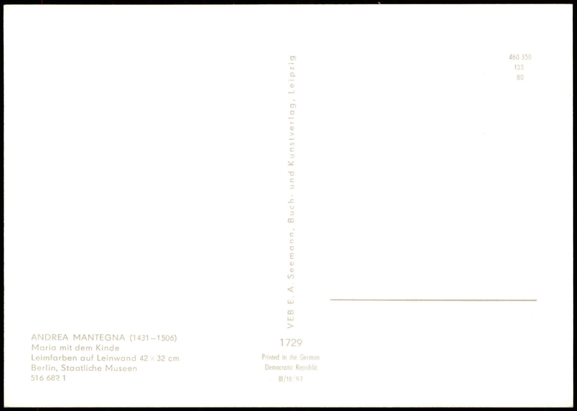 - DDR Künstlerkarte Gemälde: ANDREA MANTEGNA (1431-1506) Maria mit dem Kinde