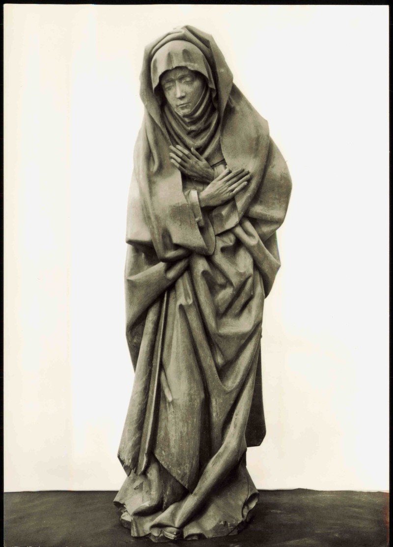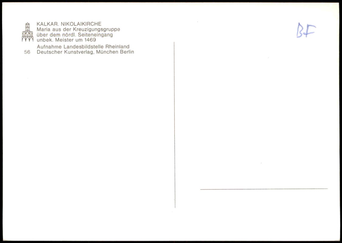 Foto Karte: Nikolai-Kirche Maria aus der Kreuzigungsgruppe über dem nördl. Seiteneingang - Kalkar Calcar