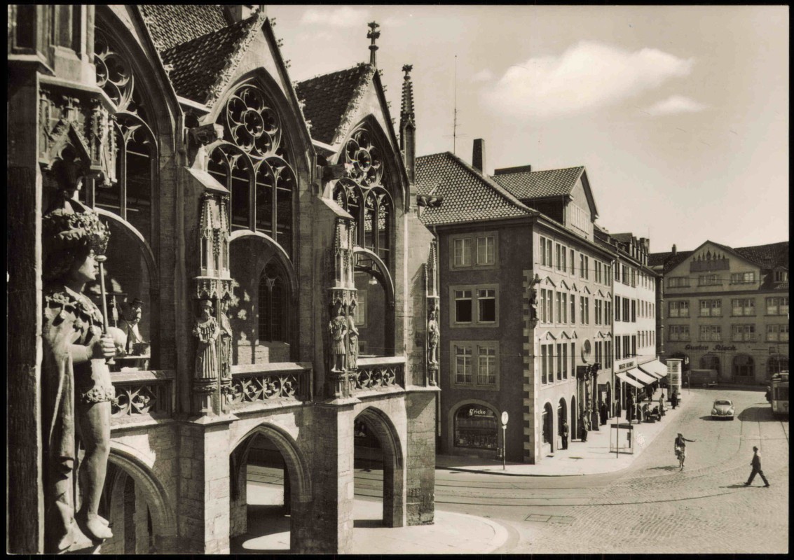 Foto Karte: Altstadtmarkt Lauben des Altstadtrathauses und Stechinellihaus - Braunschweig