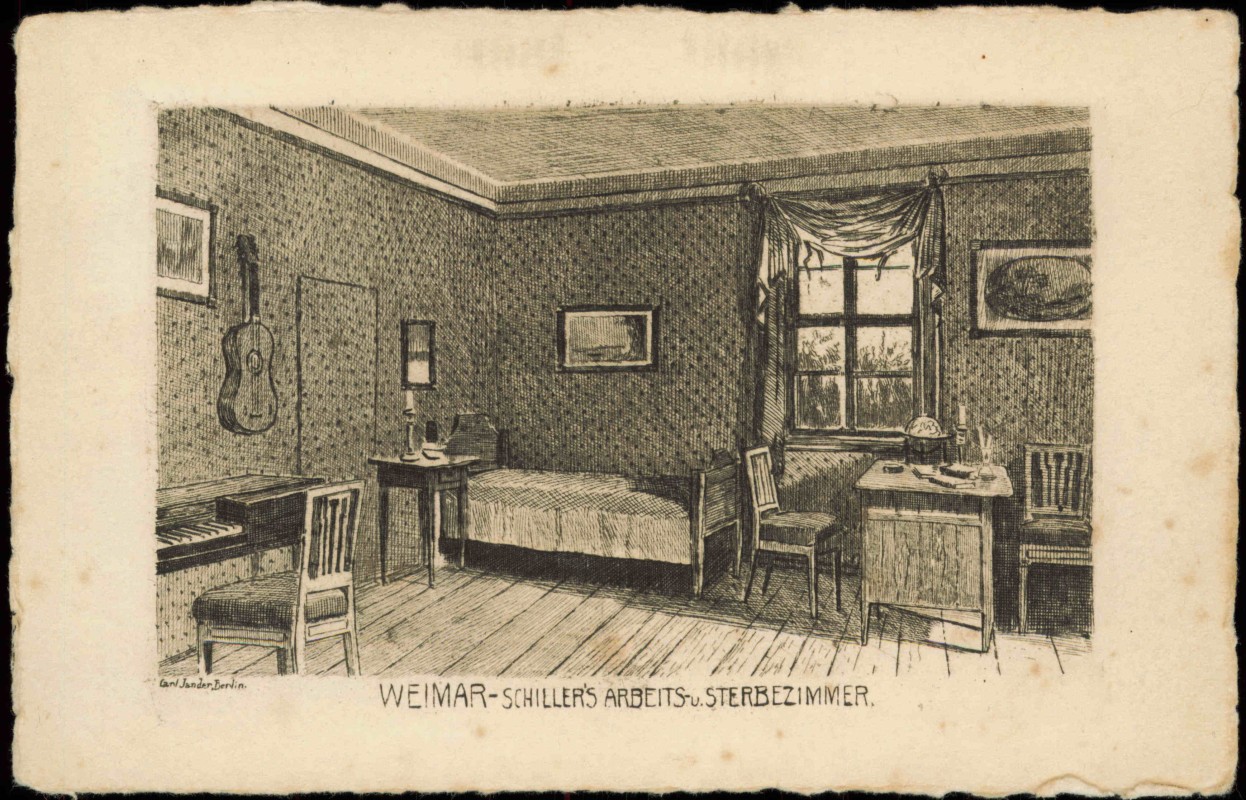Ansichtskarte: Federzeichnung Schiller Sterbezimmer - Weimar