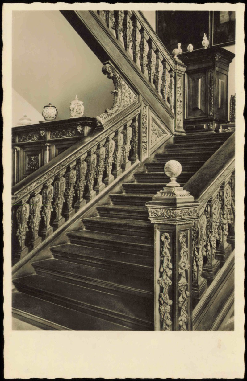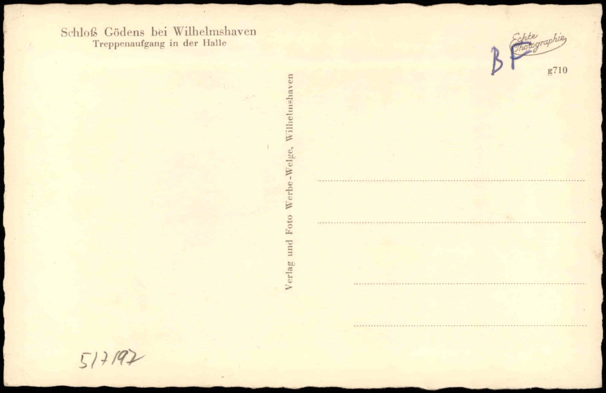 Foto Karte: Schloß Gödens bei Wilhelmshaven Treppenaufgang in der Halle - Wilhelmshaven