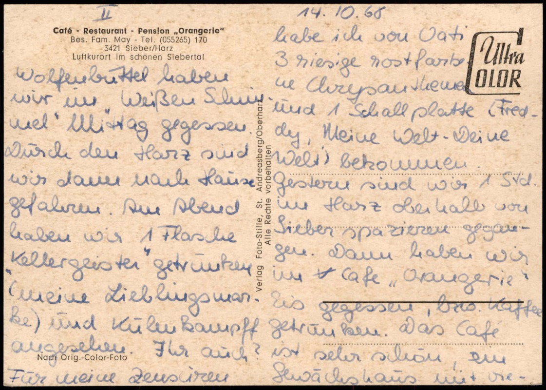 Foto Karte: Mehrbildkarte CAFÉ-RESTAURANT Pension Orangerie - Sieber (Herzberg am Harz)