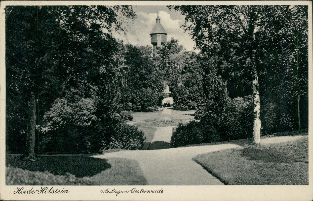 Ansichtskarte: Anlagen Osterweide - Wasserturm - Heide (Holstein)