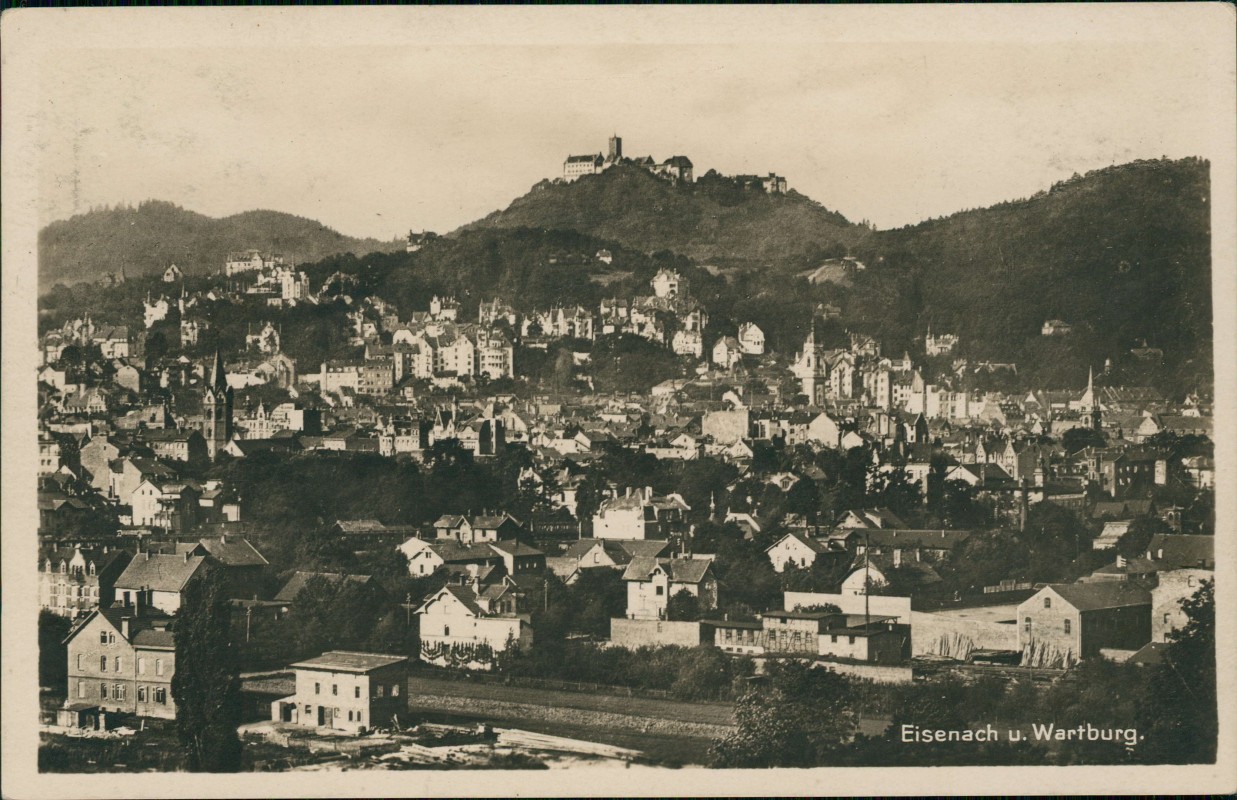 - Stadtpartie in der Ferne die Wartburg